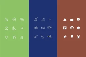 Ensuite, les pictos ! Ce sont des dessins schématiques (oui au pluriel, car ils viennent souvent par pack dans une identité !) qui illustrent un mot ou une idée. Leur objectif est de faciliter la compréhension d’une information. Comme on dit, mieux vaut un p’tit schéma qu’un grand discours. ✍️
