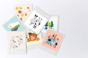 Et enfin les illus (leur p’tit surnom dans le milieu) ! Leur utilité est complètement différente : c’est avec de l’illustration qu’on va venir raconter quelque chose ou embellir un espace. Elle est vecteur d’émotion, peut prendre pleins de styles différents, et être plus ou moins complexe… On est sur l’inverse du logo et des pictos qui veulent synthétiser au maximum : là, on lâche tout ! L’illustration, ça ne laisse personne indifférent. Effet waouh garanti ! ✨
