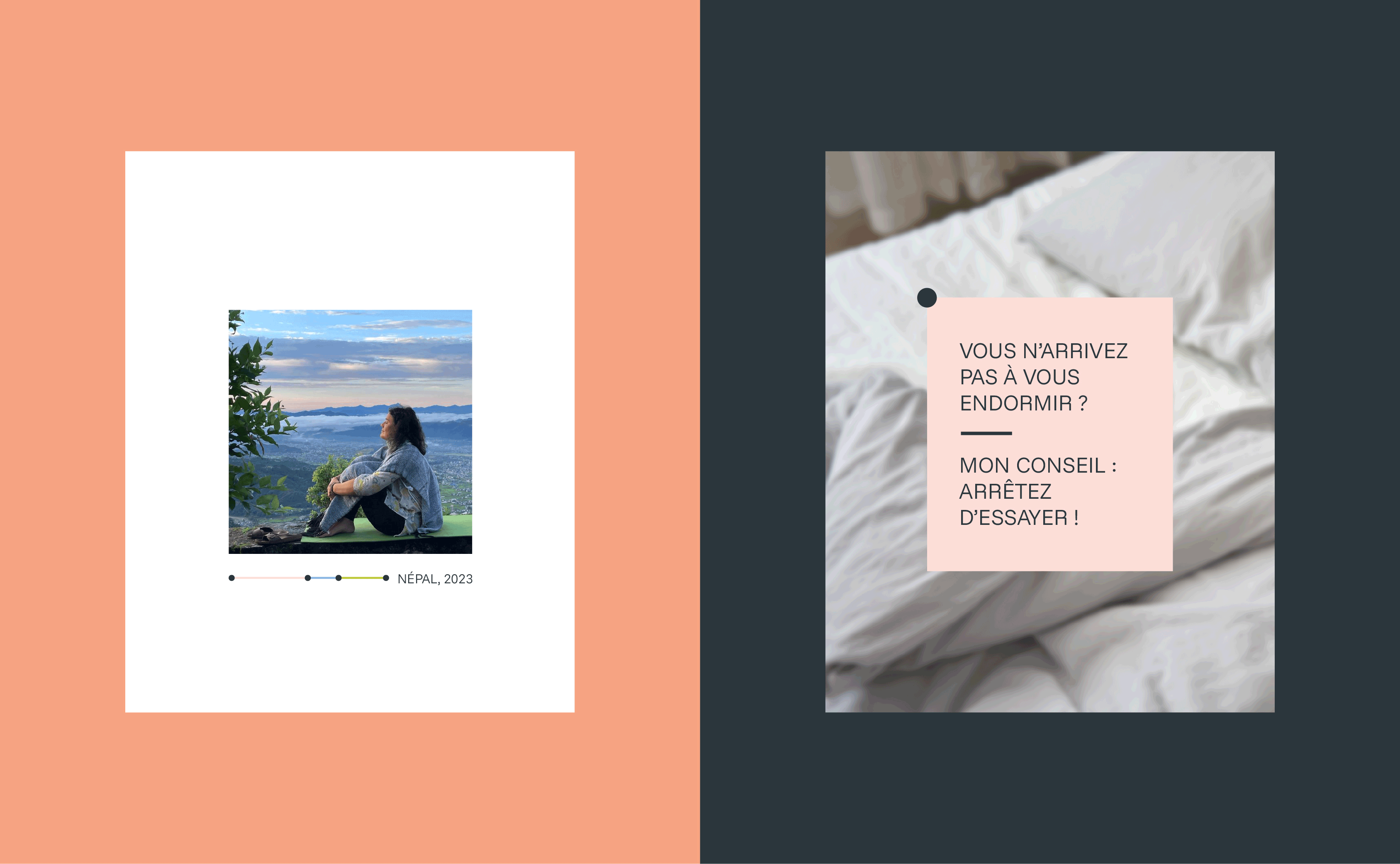 Mais surtout, nous avons réalisé des principes graphiques, qu’Aude pourra réutiliser sur ses autres supports.